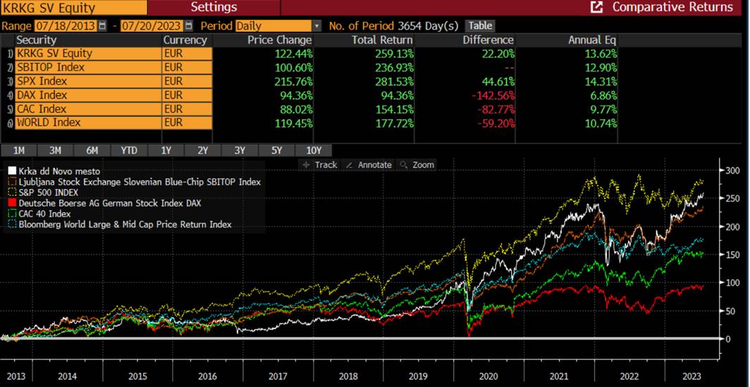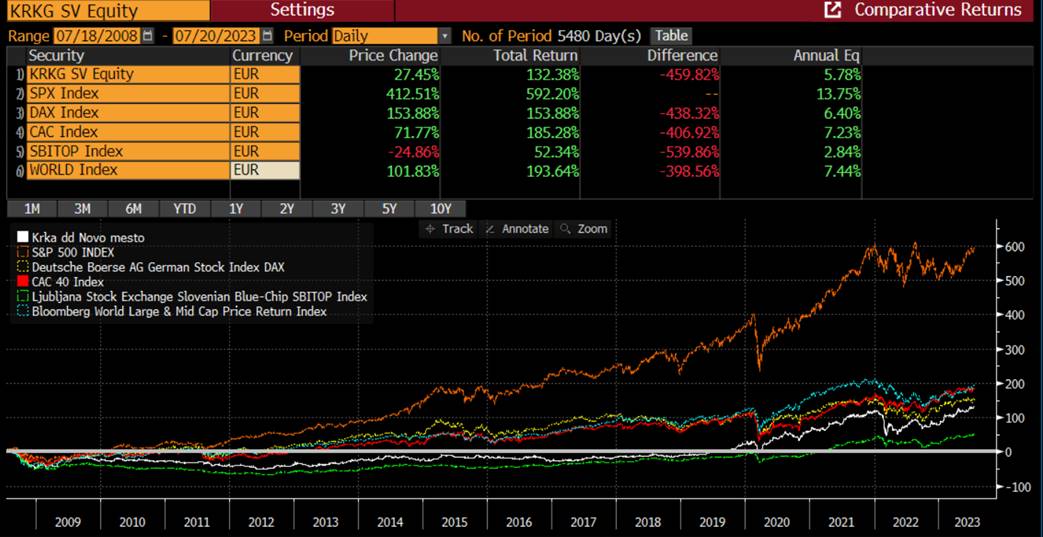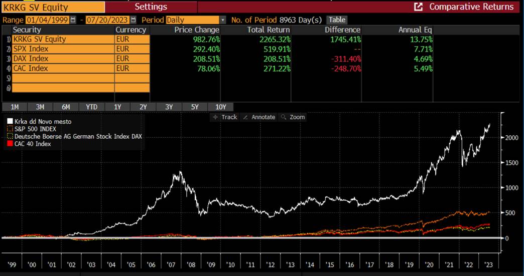 Anualizirana donosnost Krke v zadnjih 20 letih je bila: 13,57%